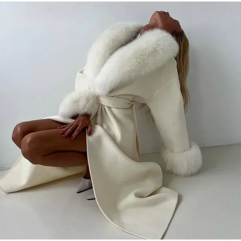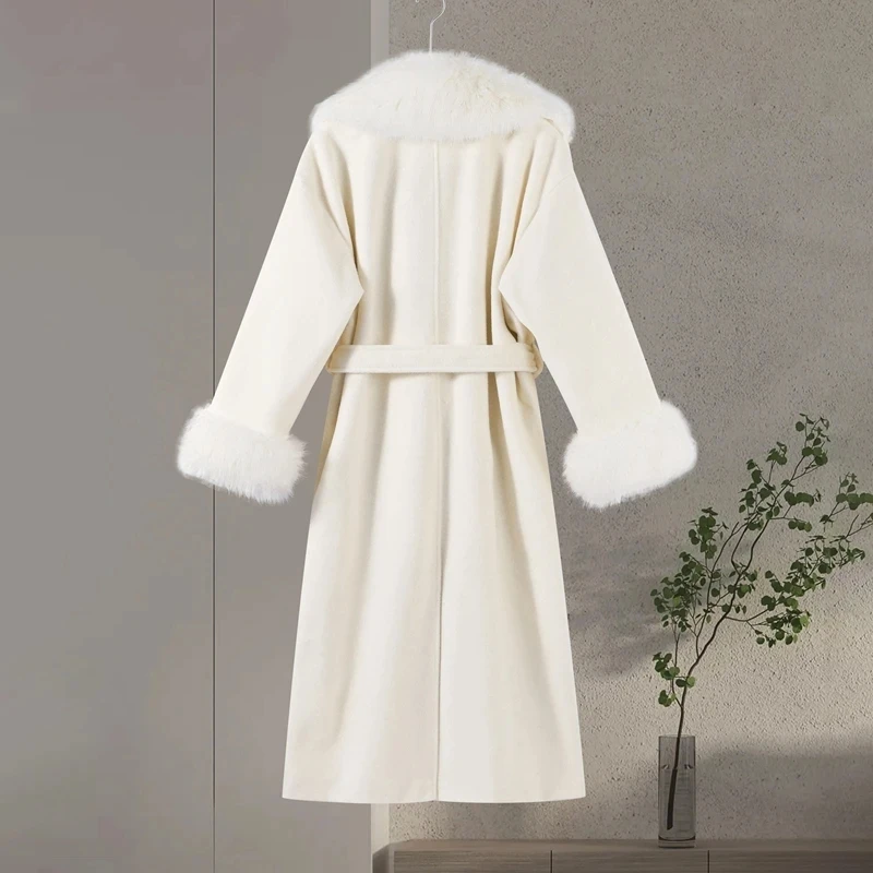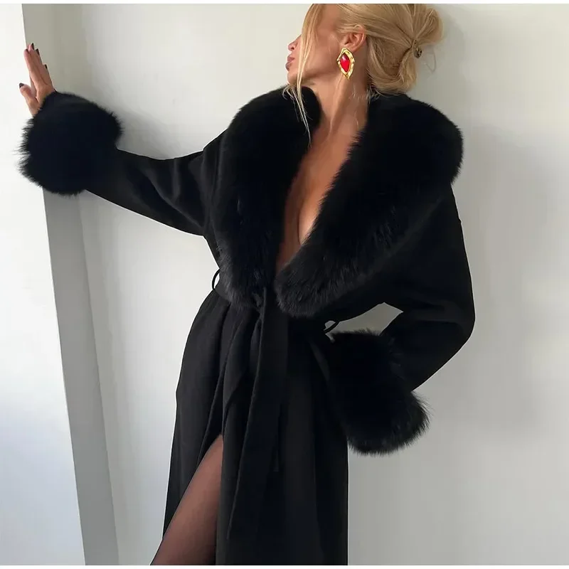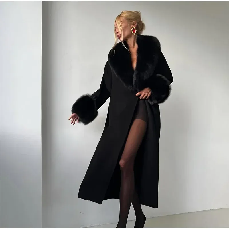 Embrace vintage charm with this chic retro black fur patchwork woolen coat, perfect for winter commutes.